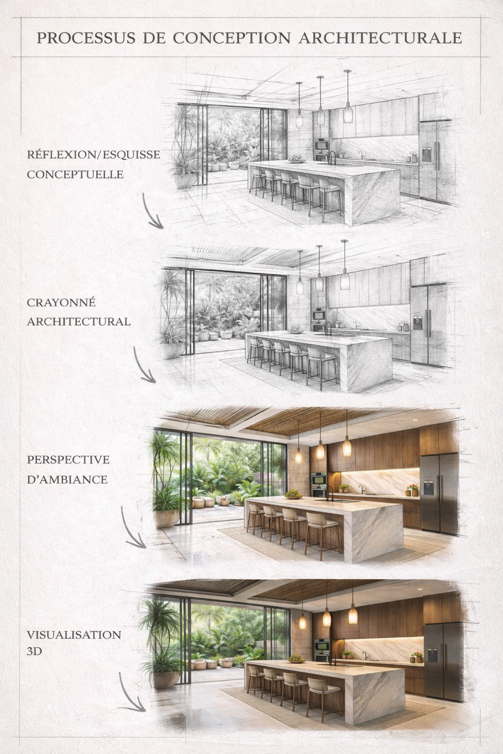 Comprendre le design d'espace, modes d'agencement, matériaux et revêtements.