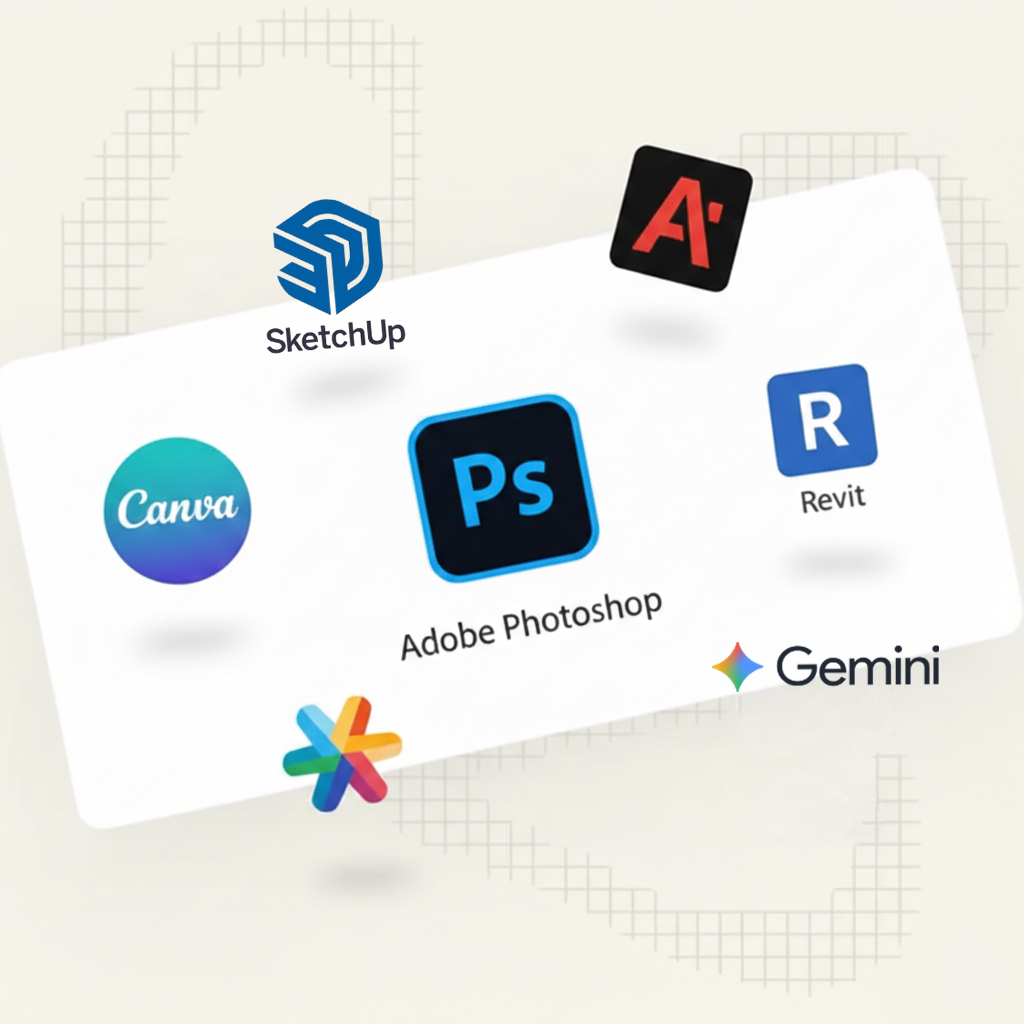 Apprenez à maitriser les logiciels tels que Sketchup, Photoshop, Revit, Canva ou encore des solutions IA de génération d'images